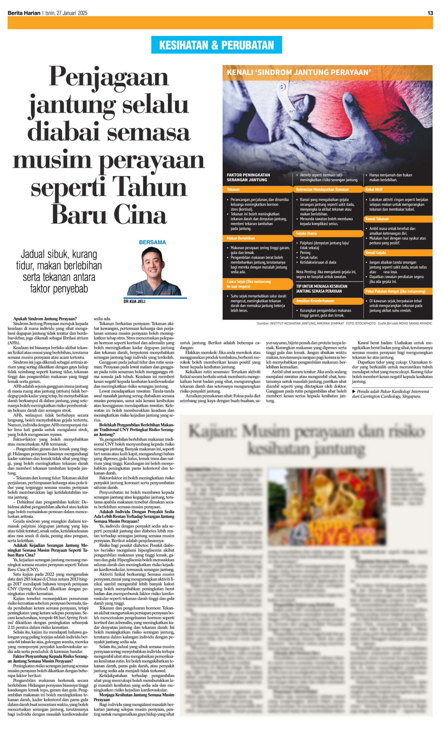 Penjagaan jantung selalu diabai semasa musim perayaan seperti Tahun Baru Cina